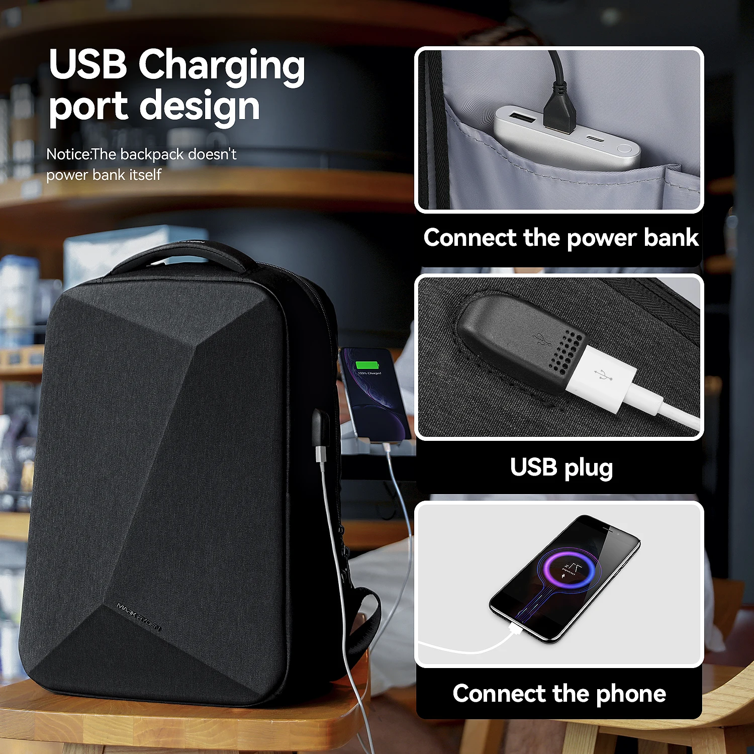 HW-Mark Ryden Wholesale Hot Sale Fashion Men Anti-theft Travel Laptop Backpack Schoolbag Geometric Charging Bag MR9405