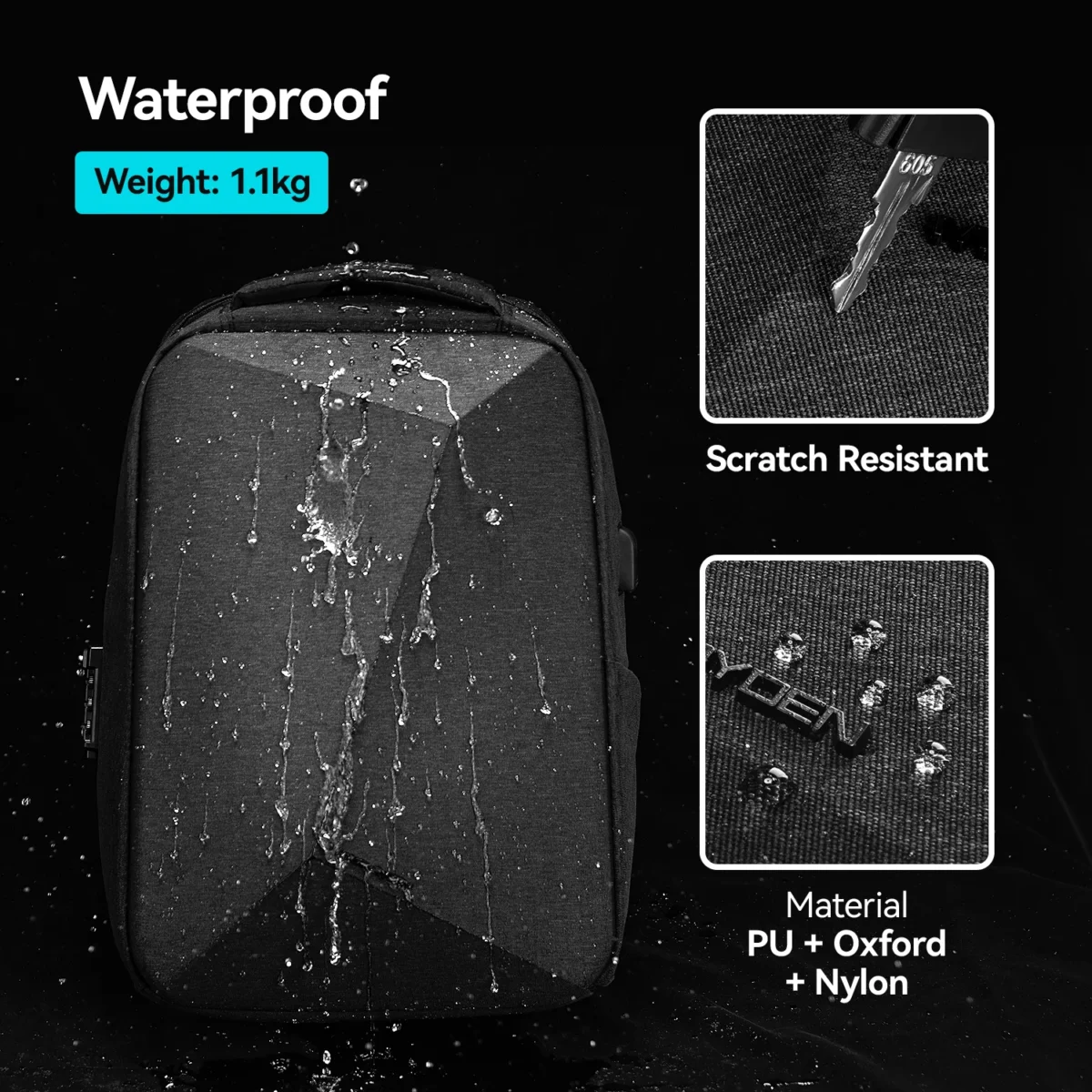 HW-Mark Ryden Wholesale Hot Sale Fashion Men Anti-theft Travel Laptop Backpack Schoolbag Geometric Charging Bag MR9405
